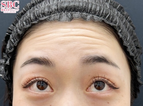 20代女性:額ボトックス術後1週間。目を開けた際に出る額の表情ジワを抑え、刻まれる前の予防に◎