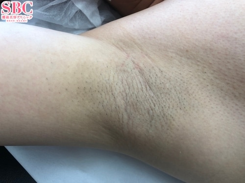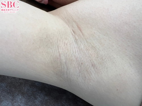 根こそぎ竹田先生による根こそぎベイザーシェービング法の術後1週間目の左ワキ