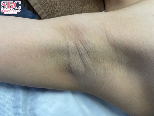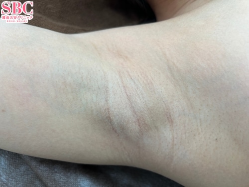 根こそぎ竹田先生による根こそぎベイザーシェービング法の術後2日目の右ワキ