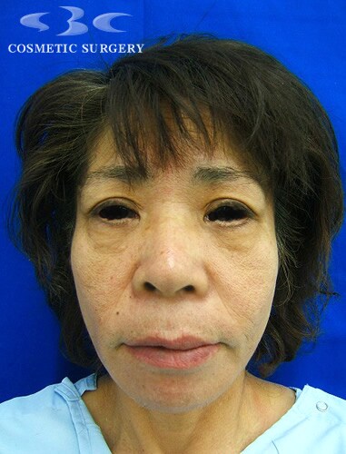 施術前 目尻の下垂、頬の下垂が目立ちます。
