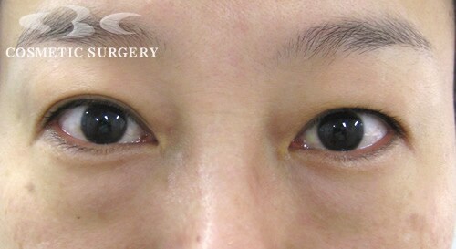 術前です。かなり 目の下のたるみが 多く いつも 疲れて見られることが悩みでした。通常なら 目の下を切る手術を 勧められるかも知れません。しかし 皮膚を切らない外科手術 私のTCBを お望みになりました。