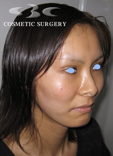 術直後です。お顔は切りません。また 糸もお顔には入れません。糸は全て 見えない 頭皮の中を通すのです。術直後でも このような状態で お帰りになれます。圧迫固定なども不要です。