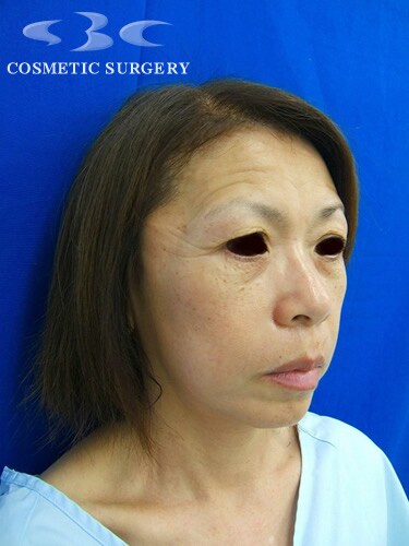 施術前 目尻の下垂、頬の下垂が目立ちます。