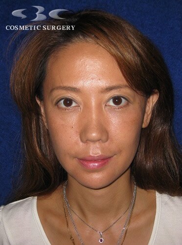 40代 おきれいな方ですが 10歳 若返りたいと 私のもとを 10ヶ月前に 訪れました。 お顔には 一切 メスを入れることなく チタンペックリフトと 脂肪注入(オートコラーゲン法)を 施術いたしました。