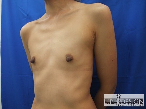 術前・・・32歳女性。一度だけ授乳歴あり。身長163?、体重49.6?。Aカップサイズをバッグではなくご自身の脂肪のみ使ってDカップくらいまで大きくしたい、とのことでした。授乳後の皮膚の余裕があったので出来る限り多くの脂肪を入れることを試みます。授乳中の張っていた胸くらい、満足して頂けるよう、大きさ・形を考えて注入致します。