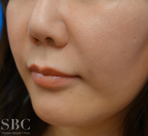 No.113032【若返り】【若返り】【リッチフェイス】術前→術後1ヶ月(左斜位):老け顔や疲れ顔に見える原因となる法令線でお悩みの40代女性の方です。術後1ヶ月で法令線は改善し、かなり若返った印象です。