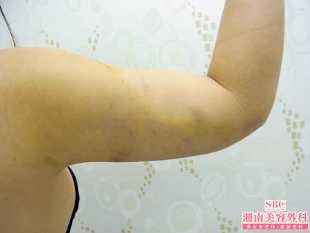 No.122129【脂肪吸引】日本人初!にしてただひとり!ベイザー最高位のドクターの称号を取ったあの有名な根こそぎ竹田先生の劇的ビフォーアフター!〜健康志向の患者様の二の腕を細くする!術後3日目・右二の腕外側から〜