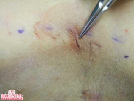 No.124380【わきが・多汗症】湘南美容外科で最も行われているワキのニオイの治療である根こそぎベイザーシェービング法の開発者である根こそぎ竹田先生による根こそぎベイザーシェービング法〜ワキのニオイは7mmの傷で解消してしまうもの!根こそぎベイザーシェービング法・右ワキ術後1ヶ月目・拡大〜