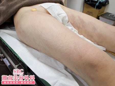No.125138【脂肪吸引】日本国内のみならず世界各国からも患者様がご来院される理由がここに!〜大学病院に勤める美人女医の太ももを再度徹底的に脂肪吸引する!/術中劇的変化・右太もも斜め下からその2〜