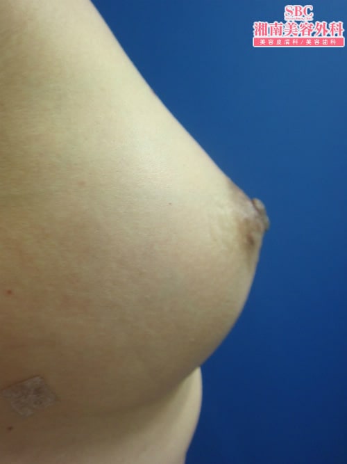 30代。他院で一度脂肪豊胸をしていますが、形が変だということと、ピンポン玉大のしこりが出来た(不自然に前方に出ていることで、少しわかるかな?)とのことで、修正&しこりとりの手術を同日で行いました。