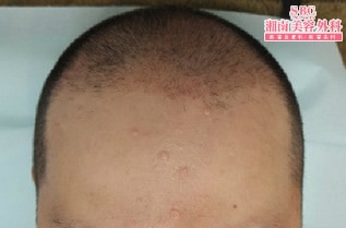 経過)徐々に進行した前頭部から頭頂部にかけての広範囲な薄毛を主訴に来院されました。