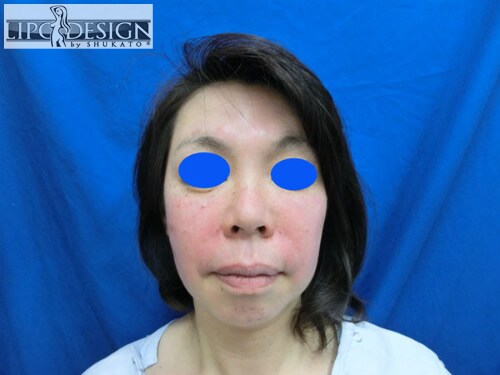 50代女性です。若返りご希望で当院を受診いただきました。若返りの方法はいくつかありますが、この方の場合は引き挙げでは無く注入による影の消退によって状況を改善できると判断し、LDFF=自分の脂肪注入若返りを実施することにしました。主に法令線を目立たなくし、あとは目の下から頬にかけての丸みを出すことで元気なお顔の印象を作ります◎施術直後なので少し赤みは出ますが、針穴も目立たず直後からお化粧も可能です。鏡で確認しながらご希望部位の改善をするので、ご納得いただける結果になると思います。よく行うのが、太ももの内側を片方だけお借りして注入する最低限の脂肪のみ採取いたします。鏡での確認含めて30分以内で終わる手術ですので、お昼休みにでも受けられるようなものとお考えください。