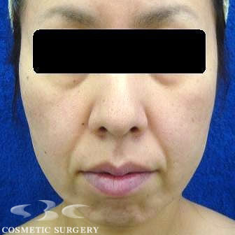 <術前>   44歳の女性です。ほうれい線・口角・ホホのタルミが著しいことに悩まれ、来院されました。