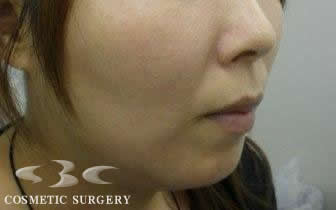 施術直後です。法令線が浅くなりました。針穴の盛り上がりは2〜3日で消えます。