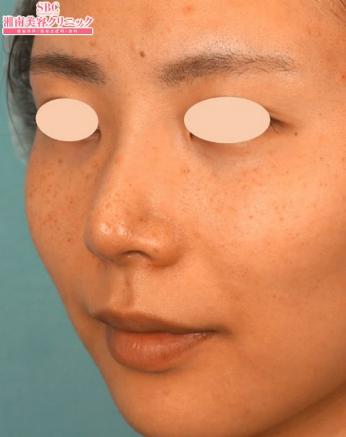 お悩みは、鼻先が丸いこと、鼻が全体的に低いこと、小鼻が広がっていることでした。
