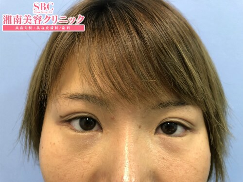 下眼瞼下制術+目尻切開の、術後1ヶ月の症例画像です。術前に比べ、術後は、目の中心から目尻にかけて、目の下縁のラインが下に引き下げられて、その分白目の面積が大きくなり、目が大きくなります。全体的に柔和な表情にもなります。下眼瞼下制術は、めを大きくする一つの有力な方法といえます。