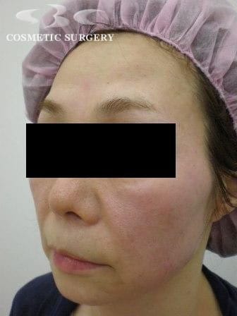施術直後です。リフトアップ効果がみられます。このあと6ヶ月にわたり、更にリフトアップしていきます。施術直後のため赤みがありますが、これは数時間で消えます。