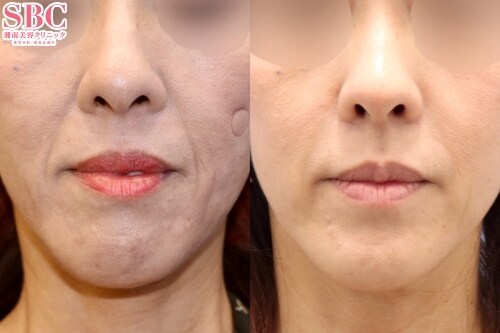 ヒアルロン酸を凹みに注射をして若返り効果をだしたました。