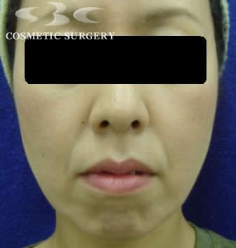 <術前>   44歳の女性です。ほうれい線・口角・ホホのタルミが著しいことに悩まれ、来院されました。