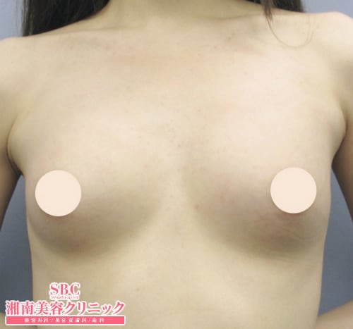術前では下の骨が浮き出る感じまでの状態です。ここに無理にバッグを入れるよりは脂肪注入をする方が安全で形も不自然にはなりません。脂肪注入豊胸は皮膚の張りの状態を見ながら適切な量まで入れていくのでとてもいい治療法です。さらにもっとボリュームが欲しくなったときには、皮膚の張りが徐々に改善してくるので、その後にもう一回入れられるというメリットもあります。パツパツなのに無理に入れるとその脂肪は死んでしまいますので、二段階もありですよ。