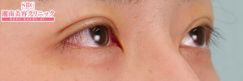 瞼表面に針を通す事が無く傷が付かない→ 腫れが極めて少ない 傷が気にならない 当日からお化粧が可能。