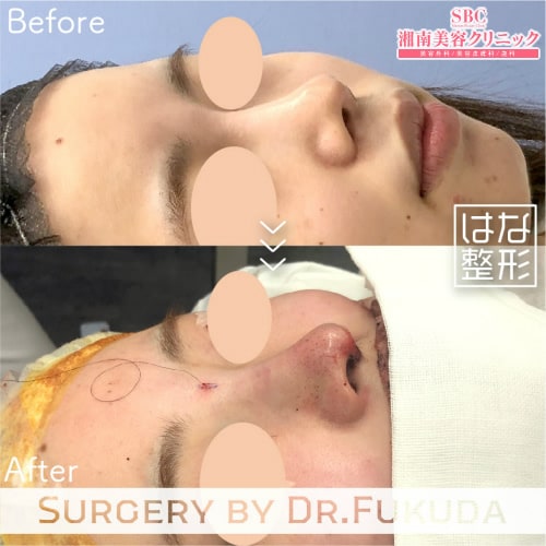 以前他院でオステオポール、小鼻縮小内側法、鼻プロテーゼ、鼻尖形成(糸で縛るのみのもの)を受けられています。