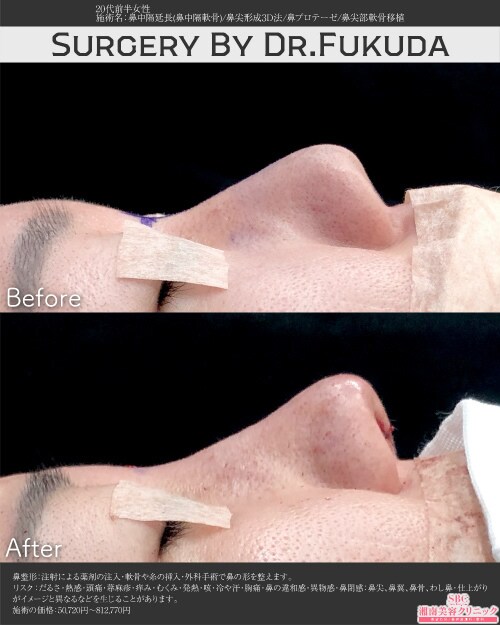 No.289199【鼻整形】鼻中隔延長(鼻中隔軟骨)+鼻尖形成3D法+鼻尖部軟骨移植+鼻プロテーゼ【施術直後】形成外科専門医による鼻整形!