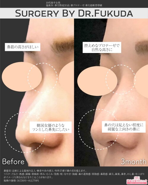 No.290549【鼻整形】鼻尖形成3D法+鼻プロテーゼ+鼻尖部軟骨移植【施術直後】形成外科専門医による鼻整形!