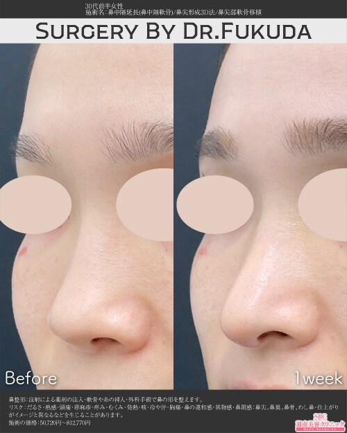 No.293091【鼻整形】鼻中隔延長(鼻中隔軟骨)+鼻尖形成3D法+鼻尖部軟骨移植【1週間後】形成外科専門医による鼻整形!