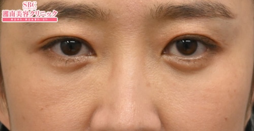 リガメントが強いケース難症例です。リガメントが強く発達する場合、脱脂によってリガメントが悪目立ちします。脂肪注入で緩和する必要がありますが、注入難易度が高く難しいケースです。とはいえ、3年連続No.1の私ですから、上手に脱脂注入しました。1か月目、クマたるみは綺麗に改善です。