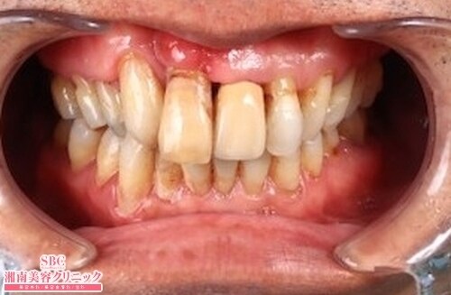 こちらのお客様は、歯周病が進行し前歯がグラグラして抜けてしまいそう、とご不安に思いご来院されました。
