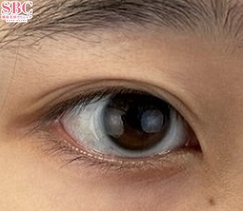 以前アイプチをされていたとのことで、ややたるみがあります。そこで、無理のない範囲で幅を広げ、しっかりと食い込ませることで、目の開きが改善し、睫毛も上向きになり、ぱっちりとした可愛らしい印象の瞳が完成しております。