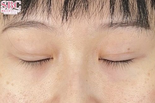 術前は目の上のたるみや凹みがありましたが、フォーエバー二重術によってまつ毛の生え際が見えるぱっちり二重になりました。二重になることで、皮膚が食い込みそのおかげで目の上の凹み感も改善していることが分かります。