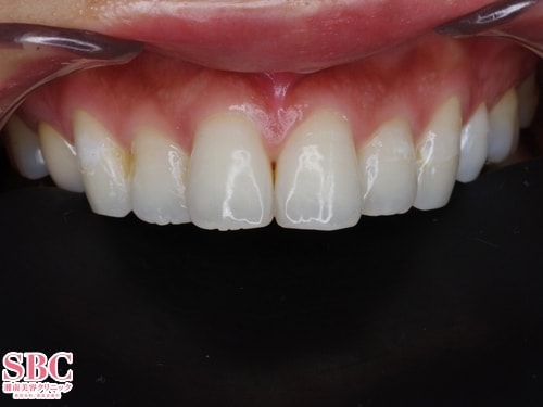 この前歯6本の施術を行いダイヤモンドオーダーセラミックを装着。