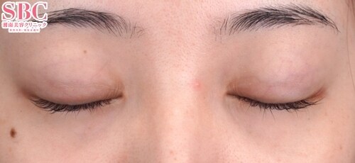 蒙古襞のハリがなかったため、目頭側の二重のラインは蒙古襞の上を越える綺麗な平行型になりました。