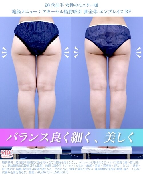 No.320336【脂肪吸引】最優秀症例に7度選ばれています。須田先生の脂肪吸引で理想のシルエットに。【アキーセル脂肪吸引 脚全体+エンブレイスRF】脂肪吸引エグゼクティブドクター★ベテラン須田医師の【脚長美脚】術後6ヶ月