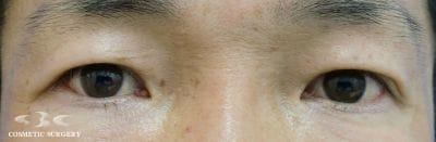 術前)40代の方で、まぶたのタルミを気にされてご相談いただきました。なるべく印象を変えばいでほしいとの要望がありました。少しだけ二重幅を広くして、タルミを解消して戻らないようにしました。