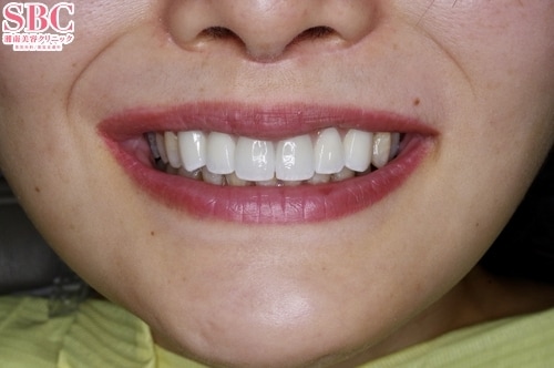 この歯並びをプレミアムダイヤモンドセラミックで改善。