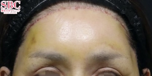 目と眉毛が近いため、眉下切開ではなく定番の『前額+コメカミリフト』を行いました。