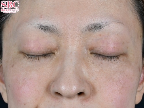 目周りのしわが気になるお客様に女優注射を施術しました。目頭側を中心にしわが改善しました。女優注射とは、小じわ・毛穴・ハリ/ツヤ改善が期待できる治療です。組織再生作用・抗炎症作用のある【リジュランi】と、真皮内に注入することで毛穴縮小や肌質改善効果のある【ボトックス】を掛け合わせたSBCオリジナル注射です。肌のハリ・ツヤが改善し、透明肌へ導きます。