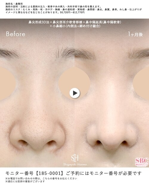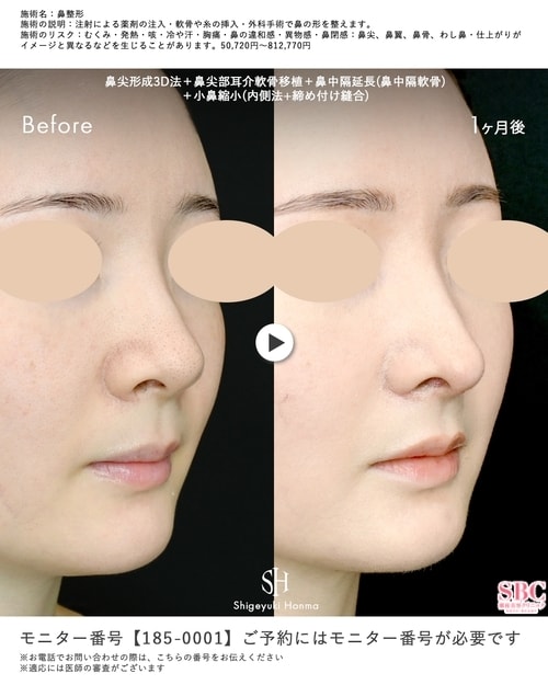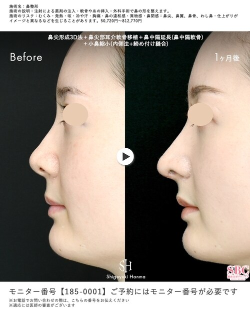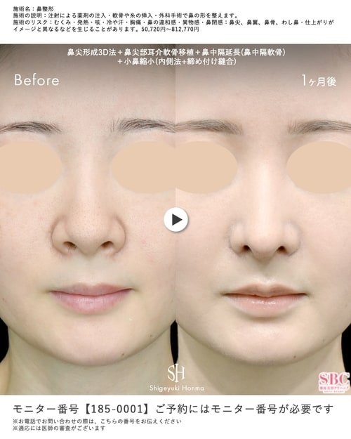 No.329288【鼻整形】「プロテーゼなしでもキレイ」鼻尖形成3D法+鼻尖部耳介軟骨移植+鼻中隔延長(鼻中隔軟骨)+小鼻縮小(内側法+締め付け縫合)
