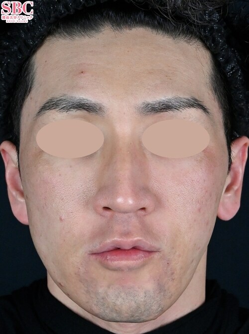 男性なので唇をふっくらさせすぎると女性らしくなってしまうと考え、唇は変化を出しつつもあまり入れすぎず、あくまで男性らしさを強調するような注入にとどめております。