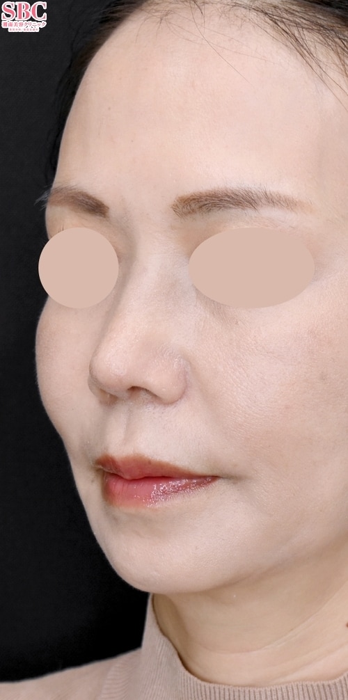 No.341245【鼻整形】50代の鼻整形「プロテーゼ不使用!若返り効果もある鼻整形」(鼻尖形成3D法+鼻尖部耳介軟骨移植+鼻中隔延長(鼻中隔軟骨)+鼻柱下降術)