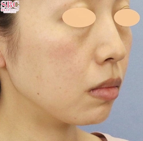 たるみが自然に全体的に補正されました。特に顔の重心が上がり顔の立体感が美しく整い、小顔効果あります。美人度もさらに増してらっしゃいますね。