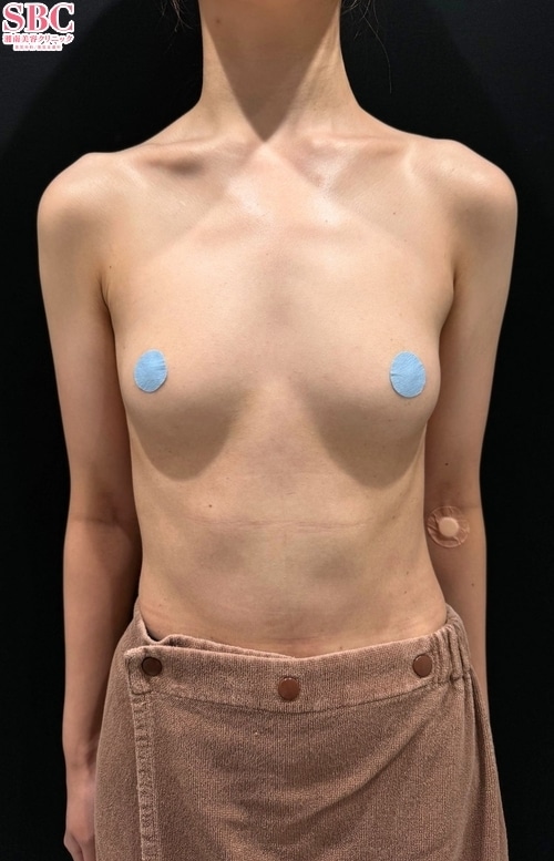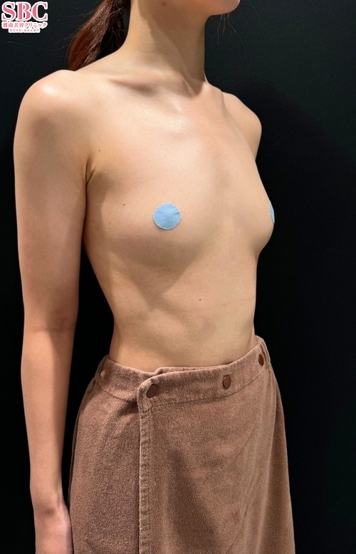 左右差のないきれいなバストに仕上がりました。脇からシリコンを入れています。