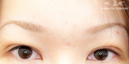 術後5日、抜糸直後です。<br>眉の位置が下がり、目の開きは改善しました。<br>腫れも僅かです。