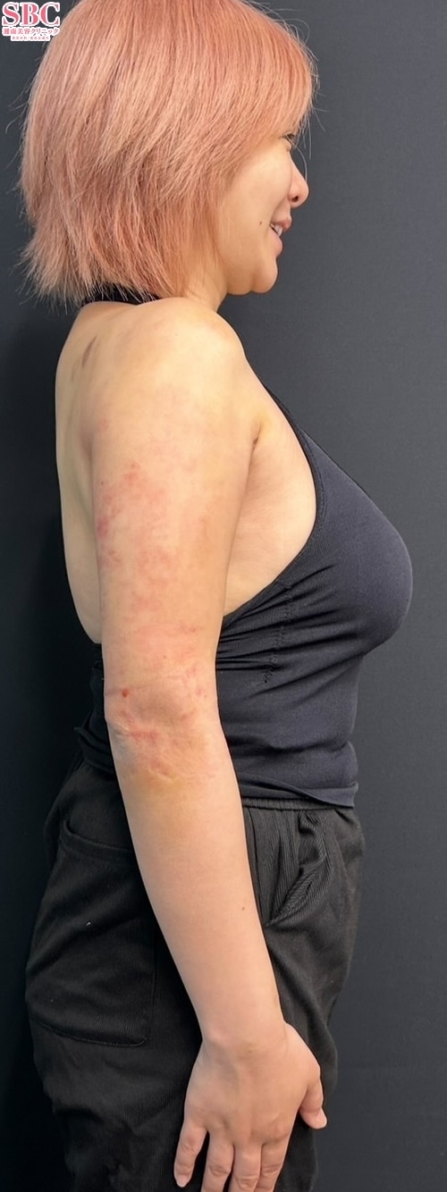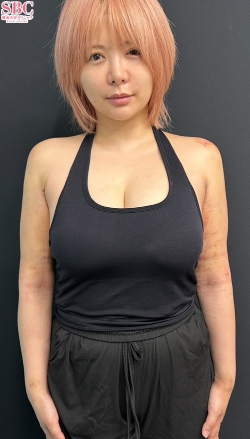 今回はインフルエンサーさん(顔出しモニター)の二の腕全周、肩、上背部の脂肪吸引をしました。