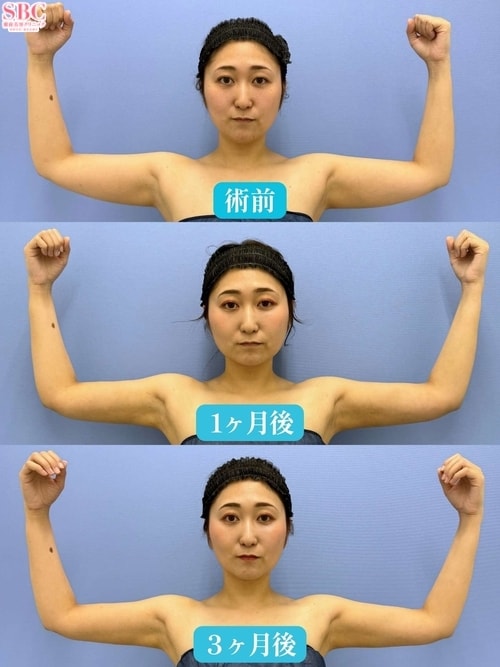 No.352748【脂肪吸引】【二の腕脂肪吸引】★二の腕脂肪吸引で直角肩の美しい二の腕へ★【二の腕全周+肩+肩甲骨横】【ベイザー併用アキーセル脂肪吸引】【術後1ヶ月】【術後3ヶ月】