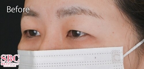 術前のお目元は瞼がほんのりまつ毛にかぶさるような形になっており、