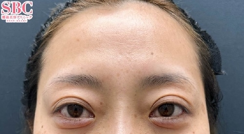 下まぶたの眼窩脂肪が生まれつき多い方や、加齢、眼精疲労に伴い皮膚や眼輪筋のたるみにより支えきれなくなった眼窩脂肪が押し出された場合、下まぶたにたるみ(目袋)が形成されます。